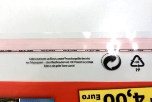 Zum Beispiel: „Dieser Beutel wurde aus Polypropylen hergestellt, der zu 100% recycelbar ist. Er ist in die Gelbe Tonne zu entsorgen, damit er z.B. zu einem Spielplatz, Eimer oder Kugelschreiber verarbeitet werden kann.” Oder „Lieber Leser – die Verpackung dieser Ausgabe wurde aus Polypropylen hergestellt, der zu 100% recycelbar ist. Entsorgen Sie sie in die Gelbe Tonne, um ihr ein zweites Leben zu schenken!“