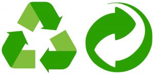 Diese zwei Symbole werden oft verwechselt. Ein Kreis, in dem sich zwei grüne Pfeile befinden, ist der Grüne Punkt. Dieses Symbol ist kein Recycling-Zeichen, es informiert jedoch darüber, dass der Hersteller der Ware sich um Recycling gekümmert hat und dass er eine Fachfirma für die Wiederverwertung des Materials aus der Verpackung bezahlt hat. Die Unternehmer weltweit verwenden dieses Zeichen gerne und platzieren es neben dem Symbol der drei Pfeile. Sein Vorhandensein zeugt davon, dass der jeweilige Hersteller an dem System der Wiederverwertung und des Recyclings von Verpackungen in seinem Land teilnimmt.